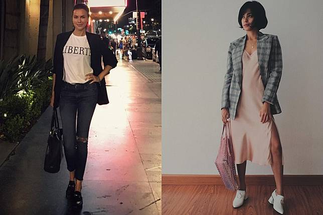Sama-sama memiliki gaya effortless, keduanya punya pendekatan fashion yang berbeda. Jika Sophia Latjuba lebih kasual, Eva Celia tampil sedikit edgy.