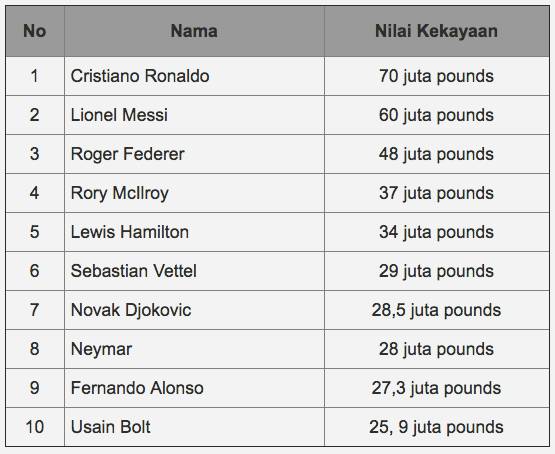 Berikut 10 besar atlet terkaya di dunia versi Forbes: