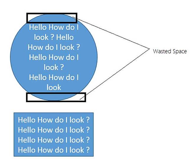 Tanpa dikasih penjelasan, lo pasti udah paham cuma dengan ngeliat gambar itu. Kalo layar dipaksakan berbentuk lingkaran, bakal ada banyak ruang kosong yang terbuang. Beda sama bentuk persegi panjang yang nggak menyisakan ruang kosong.