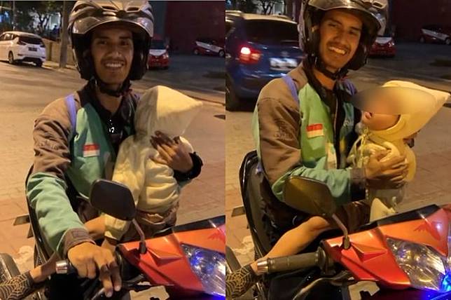 Bukan tanpa alasan, sang driver ojol rela bekerja malam-malam sembari membawa putranya yang masih kecil.